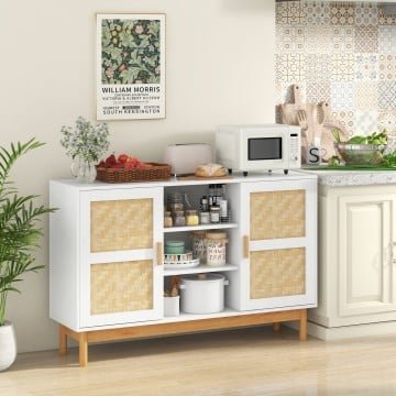48 Inch Sideboard Buffet Cabinet Floor Storage Cabinet with 2 Bamboo Woven Doors
