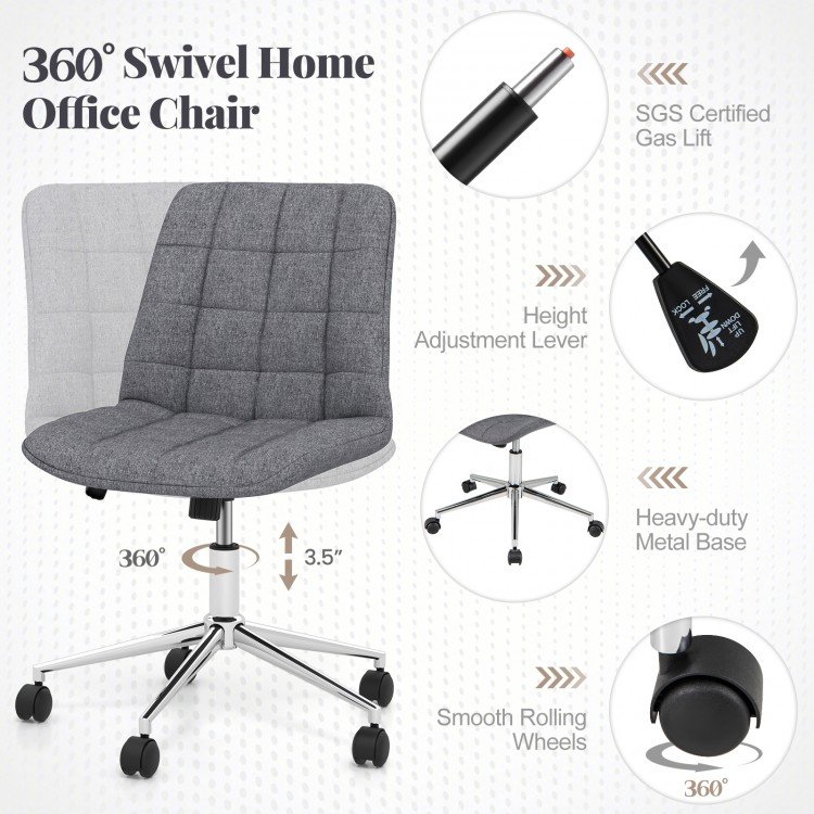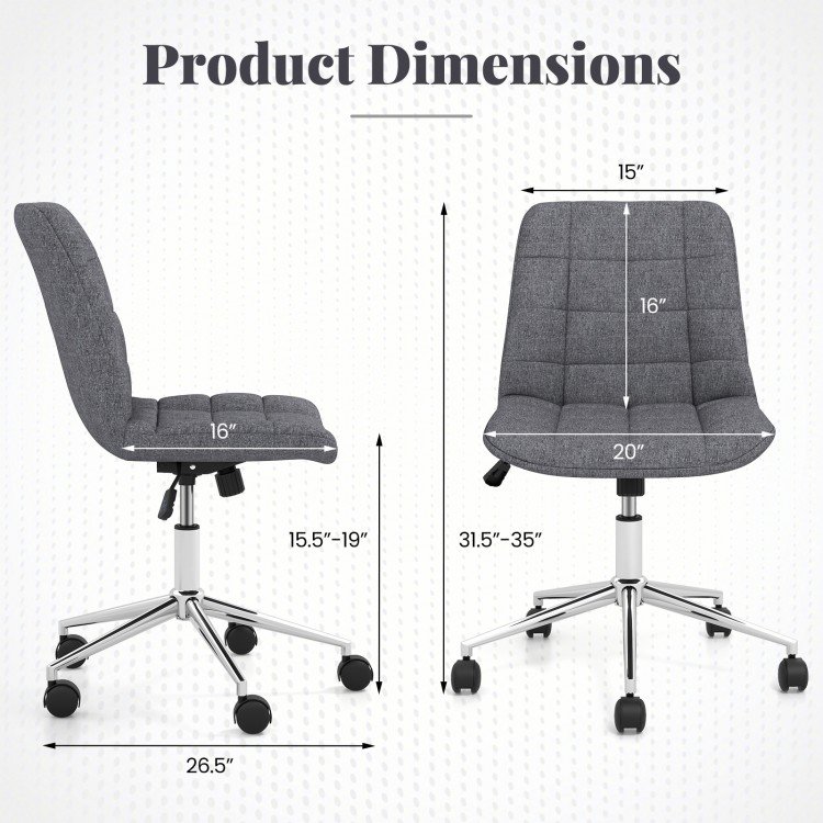 Armless Office Chair Upholstered Makeup Vanity Chair with Adjustable Height and Wheels