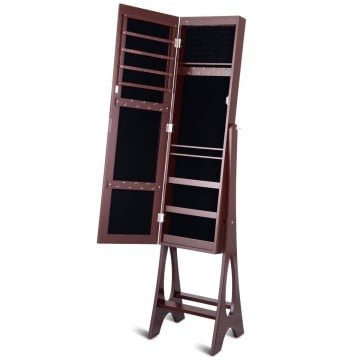 Freestanding Jewelry Cabinet Armoire Organizer with Bevel Edge Mirror
