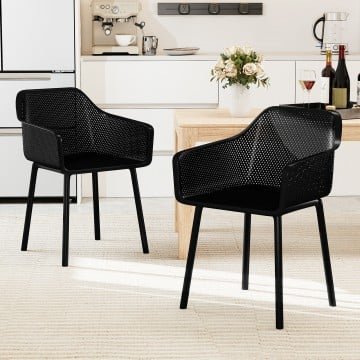 Modern Plastic Dining Chairs Set of 2 Kitchen Armchairs with Breathable Mesh Backres