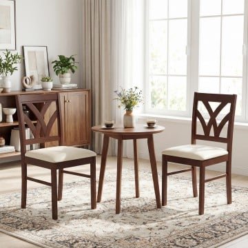 Set of 2 Wooden Dining Chairs Upholstered with Hollowed Backrest and Soft Padded Seat