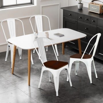 Set of 4 Tolix Style Metal Dining Wood Seat