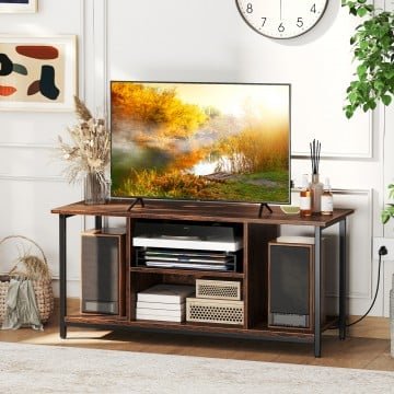 TV Stand Entertainment Center with Open Storage Shelves and Power Outlets to 50 Inches
