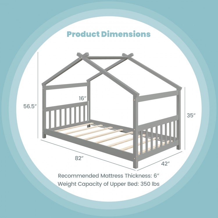 ● Open and Spacious Twin Bed Frame: This floor house bed features open and low profile design that allows kids to get in and out with great convenience, creating a cozy sleeping area. More, the comfortable headboard and footboard can be used as a backrest while sleeping.