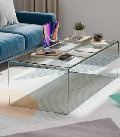 42 x 19.7 Inch Clear Tempered Glass Coffee Table with Rounded Edges-Transparent