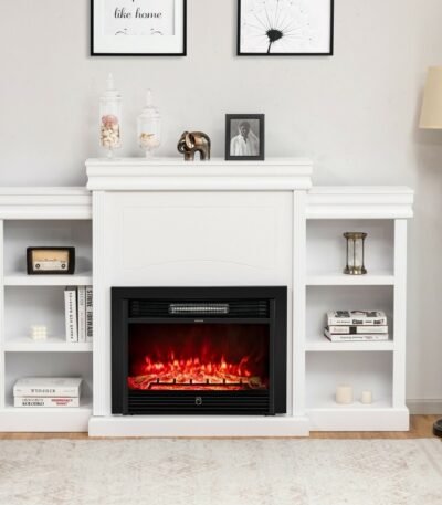 70 Inch Modern Fireplace Media Entertainment Center with Bookcase